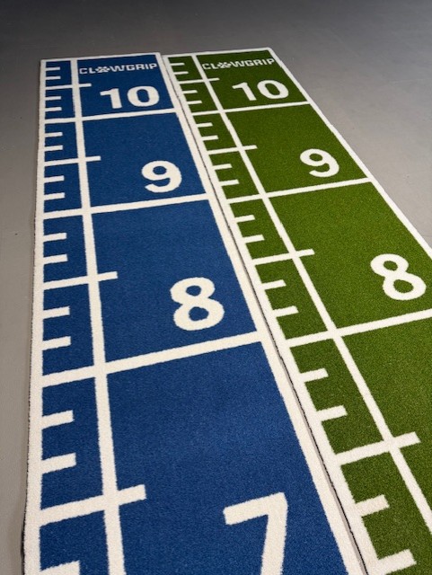 Kleuren: groen, rood, blauw of zwart met witte cijfers en lijnen en origineel Clawgrip logo