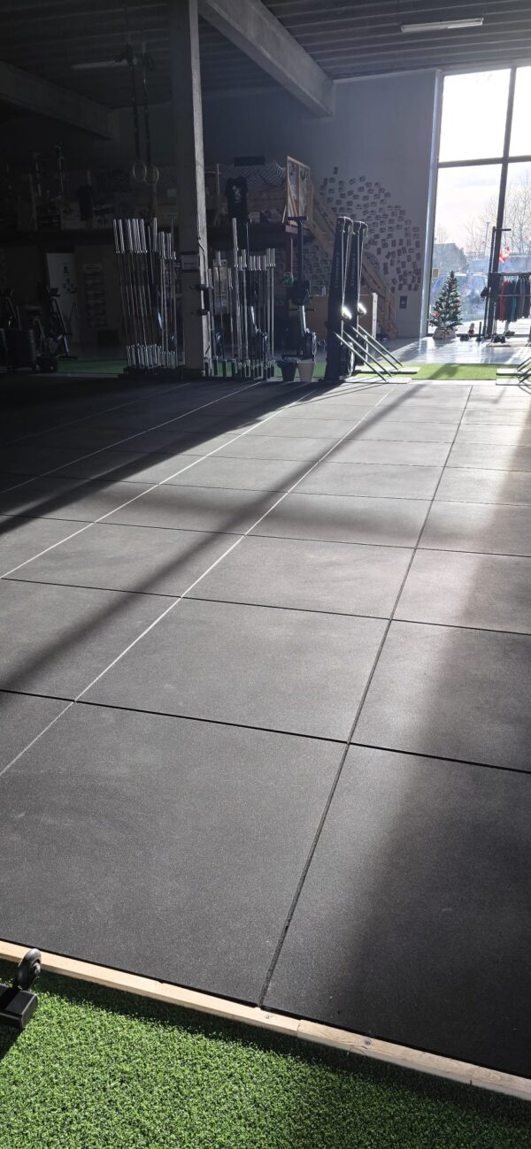 De PREMIUM tegels zijn geschikt voor sportscholen om te gebruiken als onder andere CrossFit, Hyrox, Cardio, Fysio, sport en fitnessvloer. De vloertegels hebben een afmeting van 100×100cm met een dikte van 20 mm welke zeer geschikt is om te gebruiken voor vloeren met cardio- en krachtplekken voor gebruik van losse gewichten, gewichtheffen en zwaardere oefeningen.